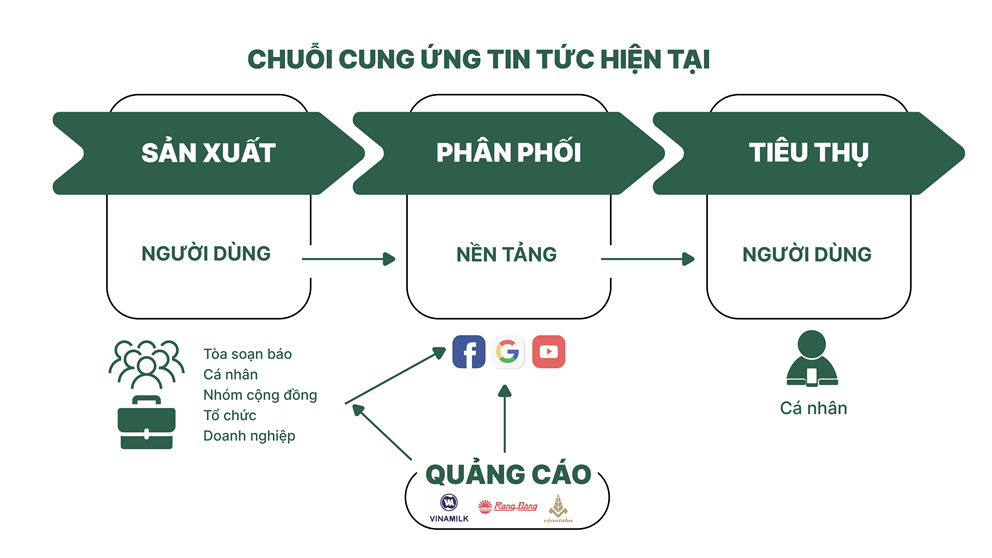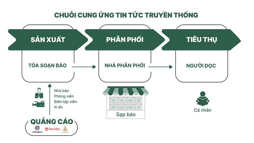 Trước đây, các cơ quan báo chí nắm vị thế độc quyền trong sản xuất tin tức, và kênh phân phối tin tức tới độc giả của báo chí là hệ thống các sạp báo. Tuy nhiên, trong thời đại số, gần như bất kỳ cá nhân, nhóm cộng đồng hay tổ chức nào cũng có thể trở thành một nguồn tin tức, và hệ thống kênh phân phối của họ chính là các nền tảng kỹ thuật số hay mạng xã hội. Như vậy, báo chí không còn là “người chơi” duy nhất trong thị trường thông tin, và người tiêu thụ tin tức cũng không còn coi báo chí là nguồn thông tin có thẩm quyền duy nhất.