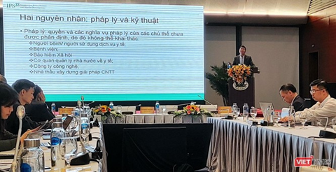 Ảnh: Ông Nguyễn Quang Đồng trình bày tại phiên chuyên đề về chuyển đổi số trong quản trị y tế, trong khuôn khổ hội nghị Chuyển đổi số y tế quốc gia. (Nguồn: Viettimes)