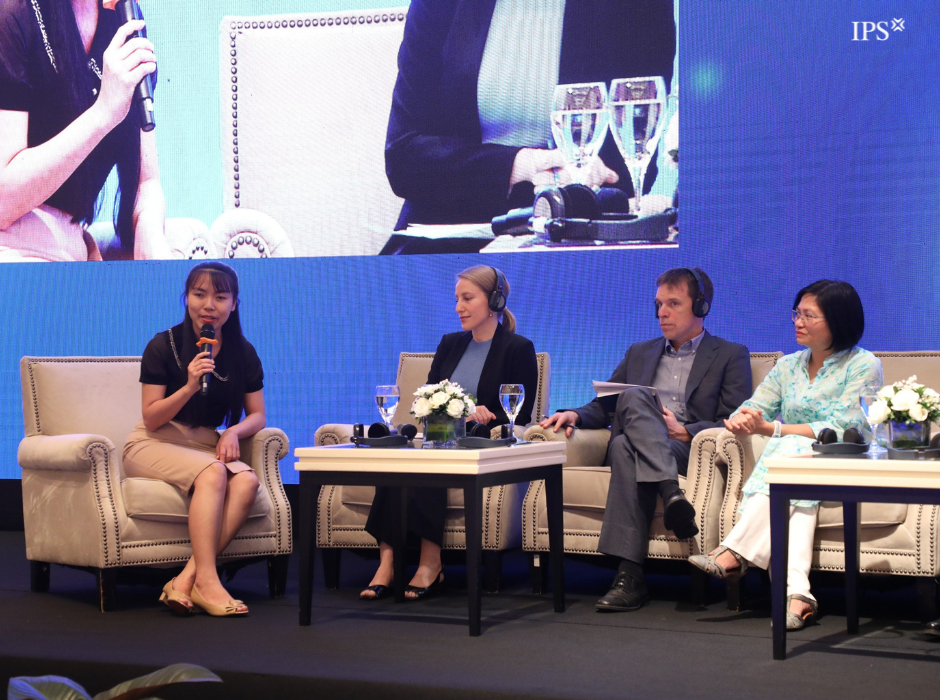 Bà Võ Cẩm Giang chia sẻ tại Hội nghị Công bố Báo cáo Chỉ số Hiệu quả quản trị và hành chính công cấp tỉnh (PAPI) năm 2023