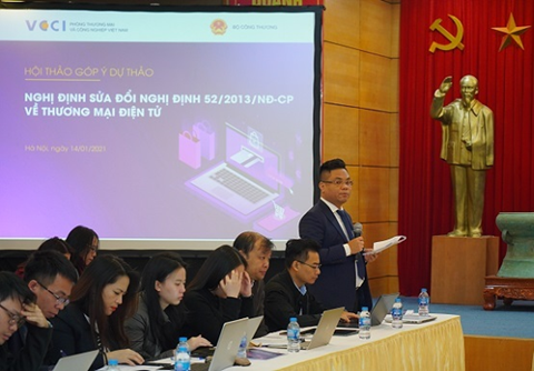 Phát biểu tại hội thảo, ông Đậu Anh Tuấn, Trưởng Ban pháp chế VCCI cho biết, Bộ Công Thương đang xây dựng dự thảo Nghị định sửa đổi, bổ sung một số điều của Nghị định 52/2013/NĐ-CP về thương mại điện tử và lấy ý kiến của các đối tượng chịu tác động để góp ý xây dựng dự thảo này. Nội dung của dự thảo bổ sung một số quy định về cơ chế quản lý hoạt động thương mại điện tử có yếu tố nước ngoài; trong đó, bao gồm điều kiện tiếp cận thị trường của nhà đầu tư nước ngoài; đăng ký website bán hàng của thương nhân nước ngoài, của thương nhân nước ngoài bán hàng qua sàn thương mại điện tử Việt Nam...