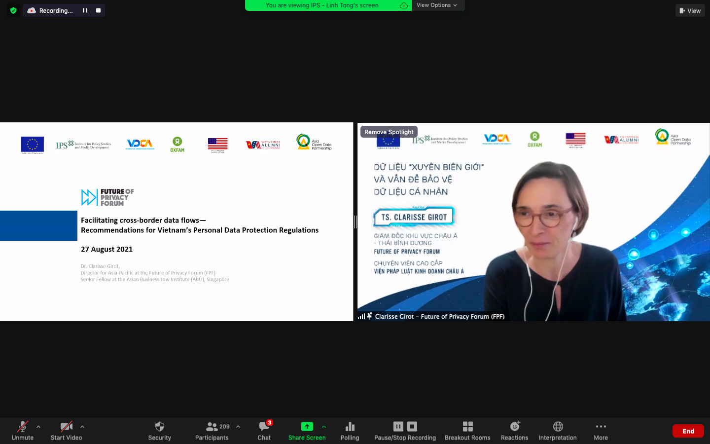 Tiếp nối, ông Fan Tuck Chee, Phó Giám đốc điều tra, Ủy ban Bảo vệ dữ liệu cá nhân Singapore, giới thiệu mô hình quản trị dữ liệu cá nhân xuyên biên giới dựa trên công cụ pháp lý là Đạo Luật Bảo vệ Dữ liệu cá nhân Singapore (PDPA) dành cho khu vực tư nhân. Cách tiếp cận trong việc xây dựng quy định bảo vệ dữ liệu cá nhân là quy định trách nhiệm giải trình của chủ thể có nghĩa vụ thực thi dựa trên nguyên tắc quản trị rủi ro xâm phạm dữ liệu.